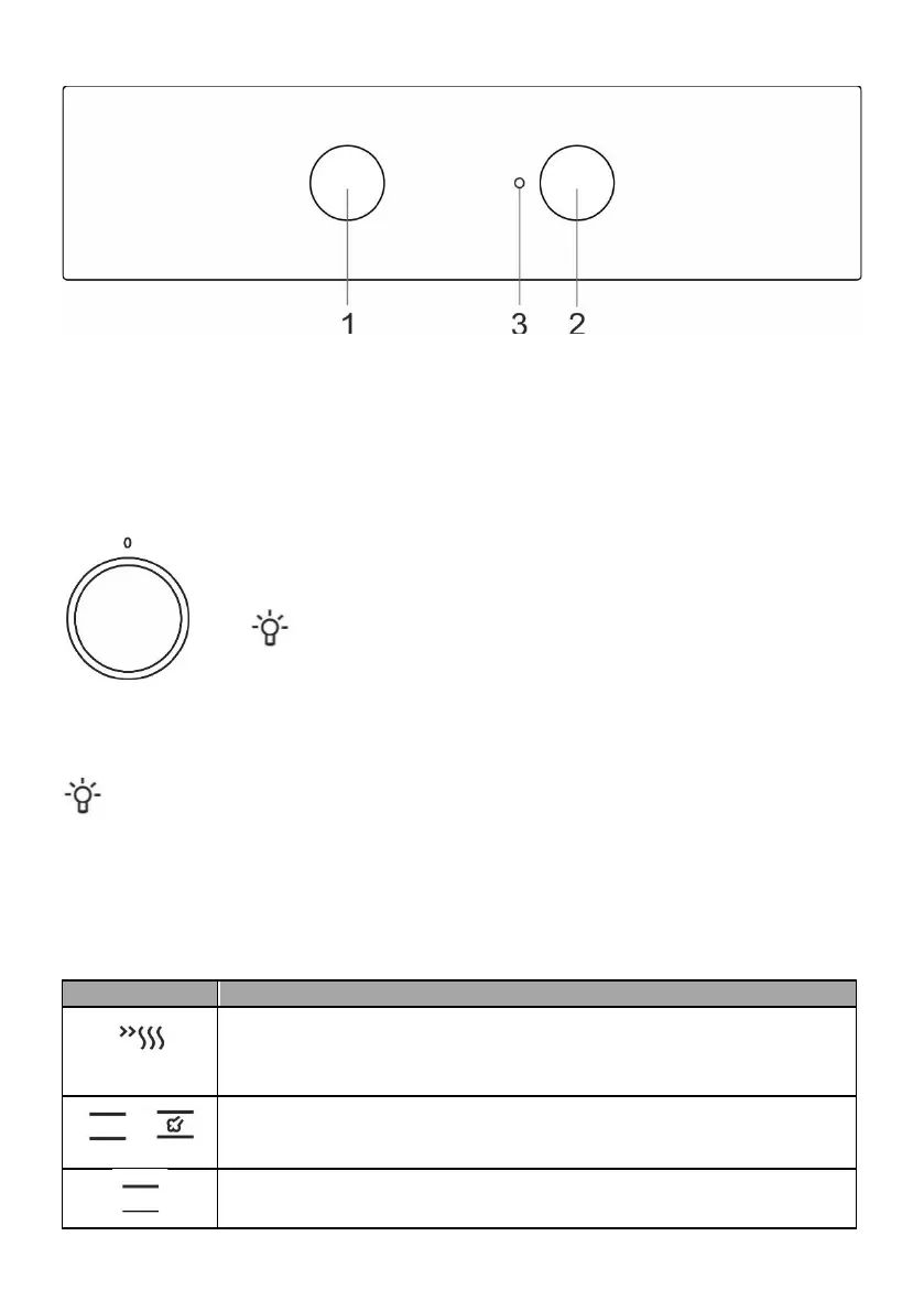 The oven can be operated with the knob for "oven mode selection" to select the function and "temperature setting" to set