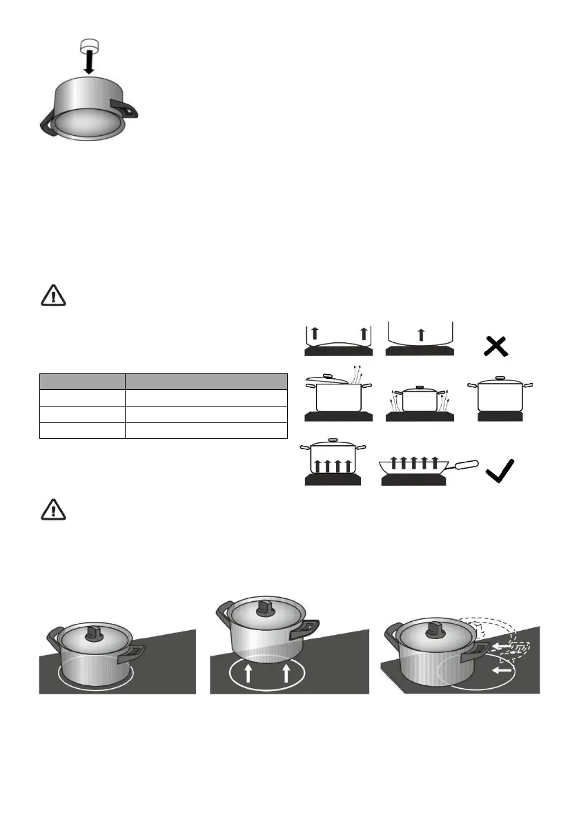 • Only use cookware with flat bottom! Concave or convex (indented or bulging) bottom may impede the operation of