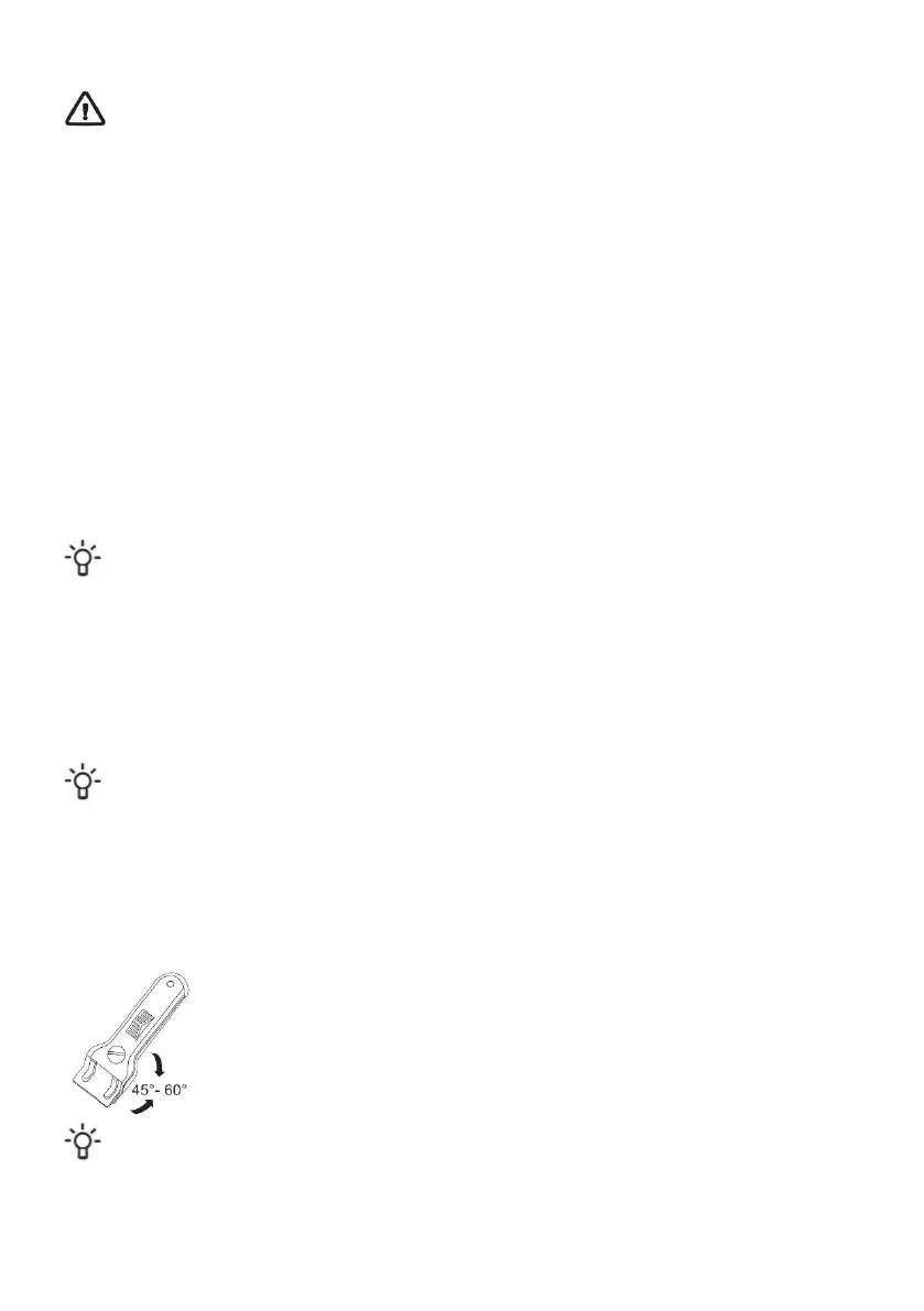 • Do not press the scraper perpendicularly against the glass and do not scratch the hob surface