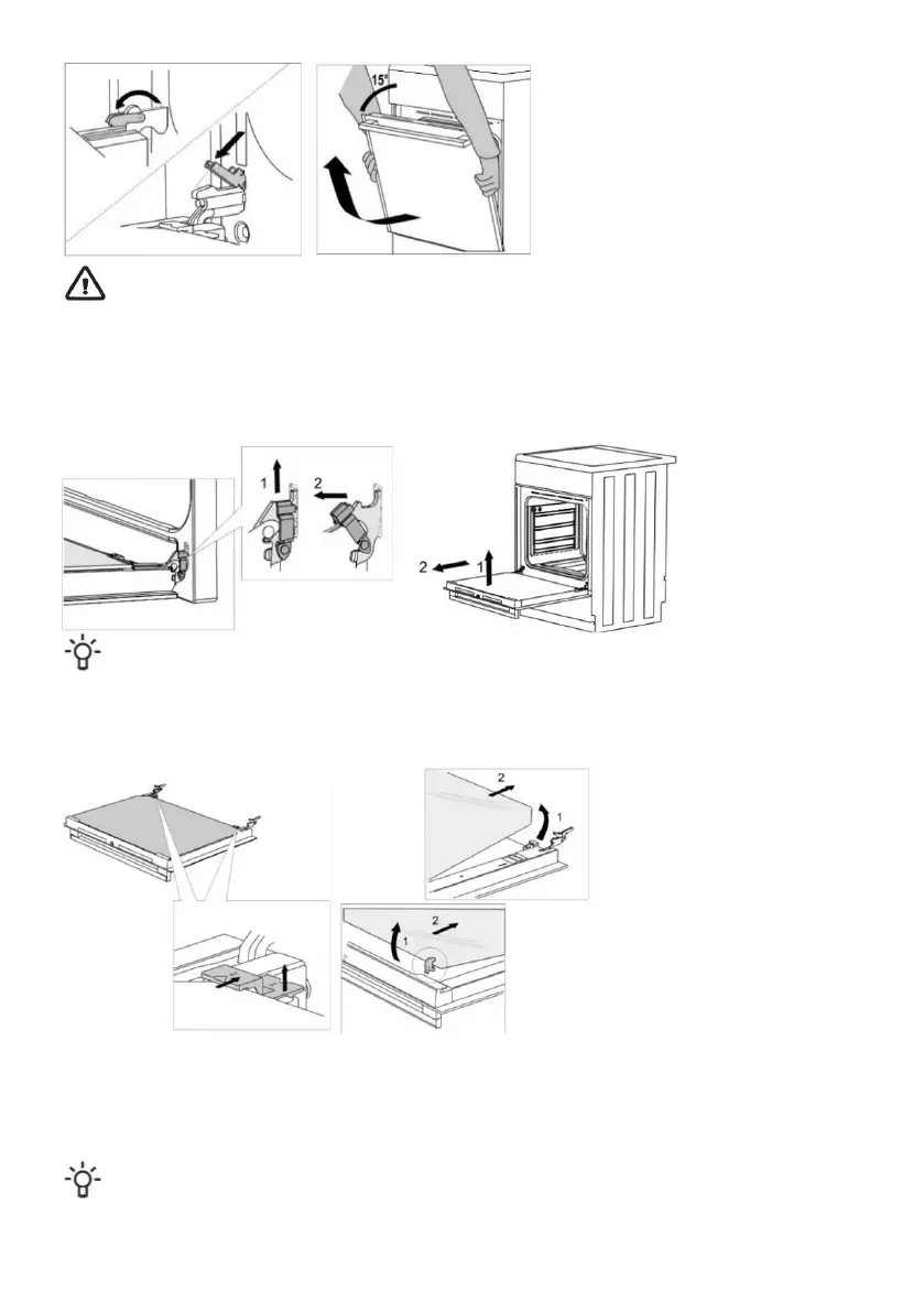 • Slowly close the oven door, lift it slightly and pull it out from the both hinges of the appliance.