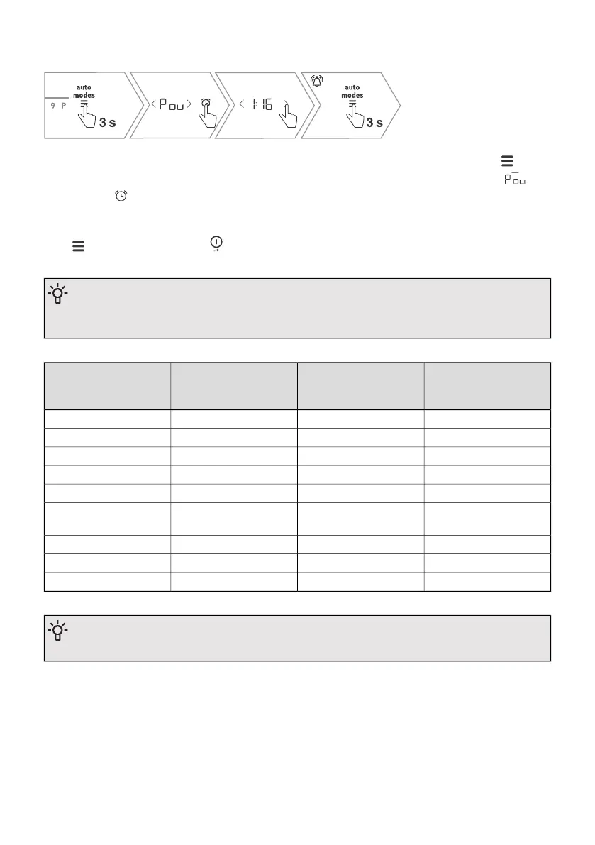 After connecting the appliance to the power mains, press the following key for 3 seconds . As