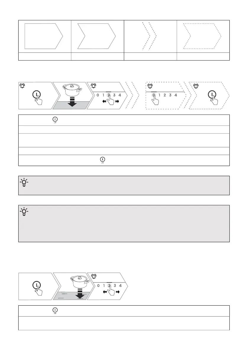 If no cooking zone is switched on in 20 seconds, the induction hob will power off.
