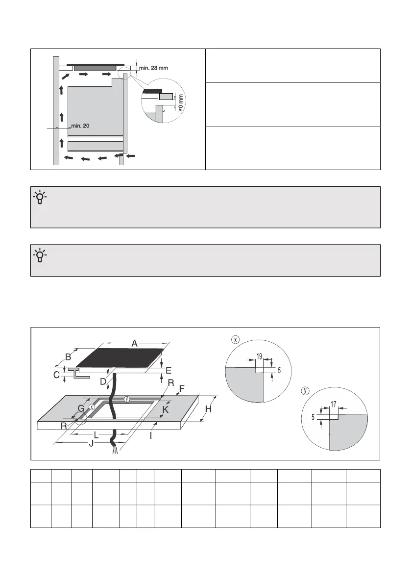 • Installing an oven under the induction hob is