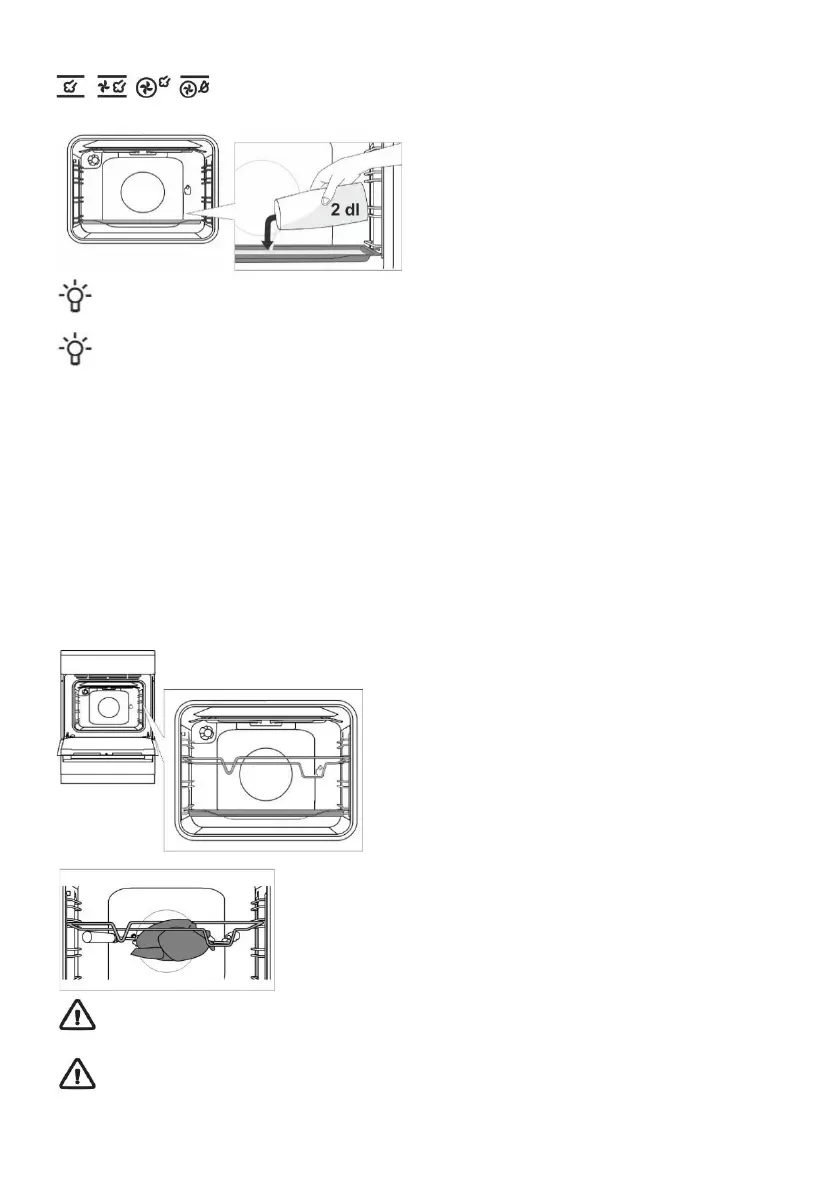 • When preparing food, a lot of steam is formed inside the oven, which is drained through the chimney at the back of