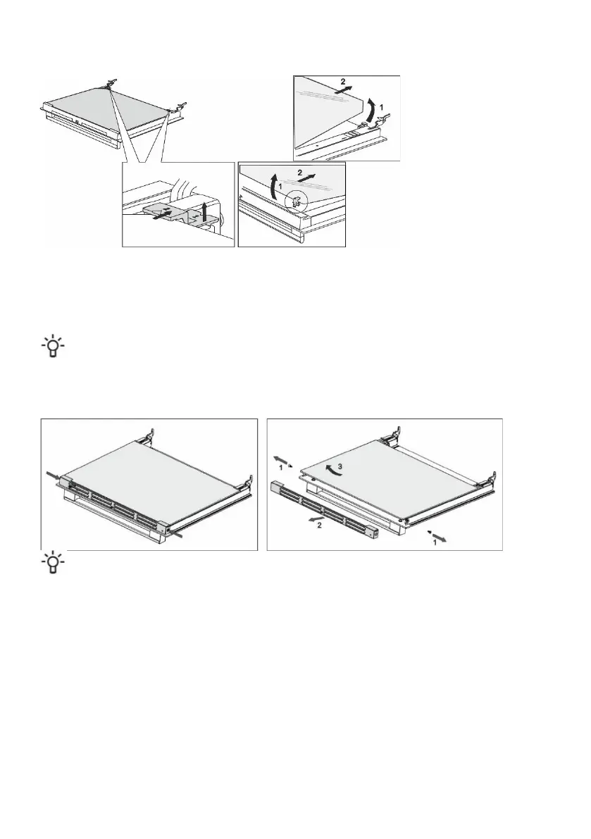 • To remove the third glass pane (only with some models), lift and remove it. Also remove the rubber seals on the