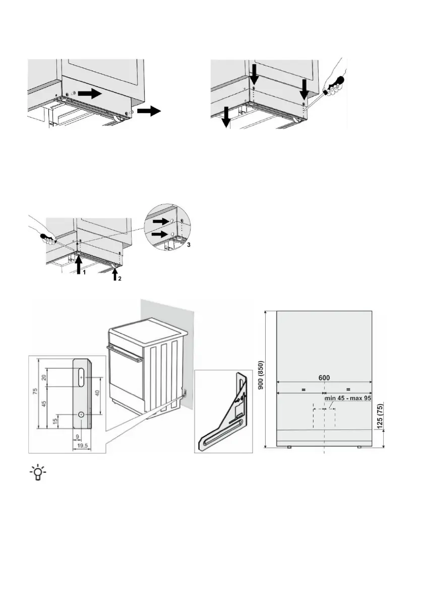 PREVENTION FROM TIPPING OVER (mm) (depending on the model)