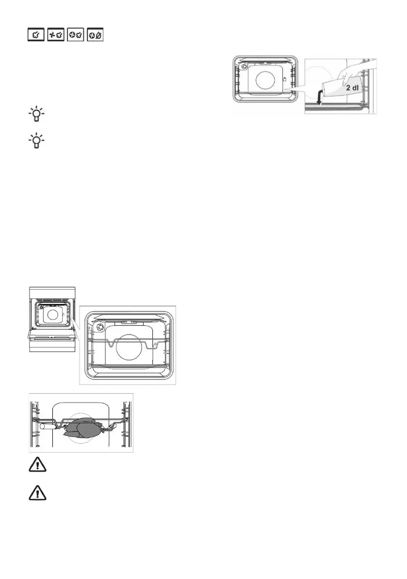• When preparing food, a lot of steam is formed inside the oven, which is drained through the chimney at the back of