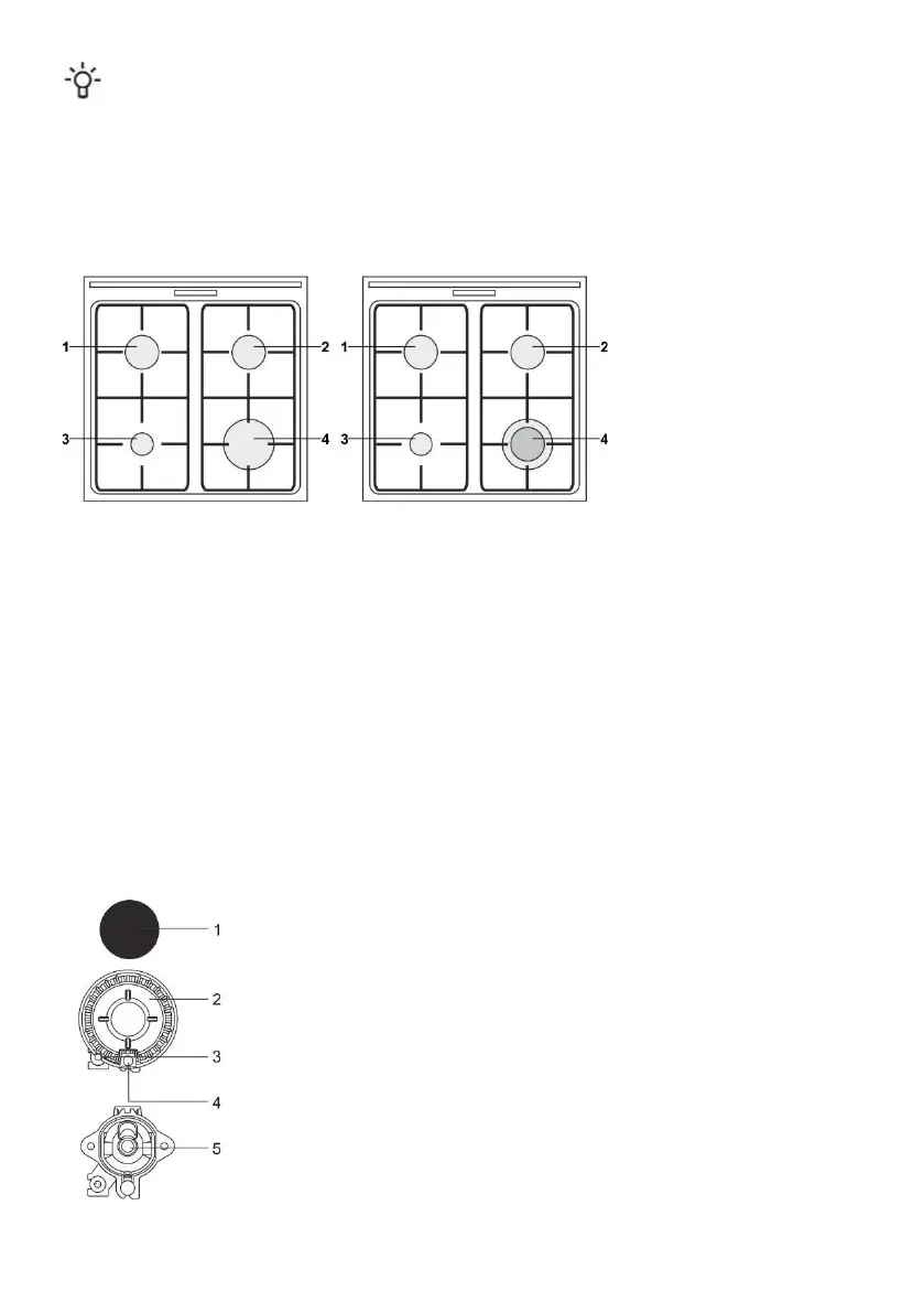 • Always place the burner cap accurately on the burner crown. Make sure the slots in the burner crown are never