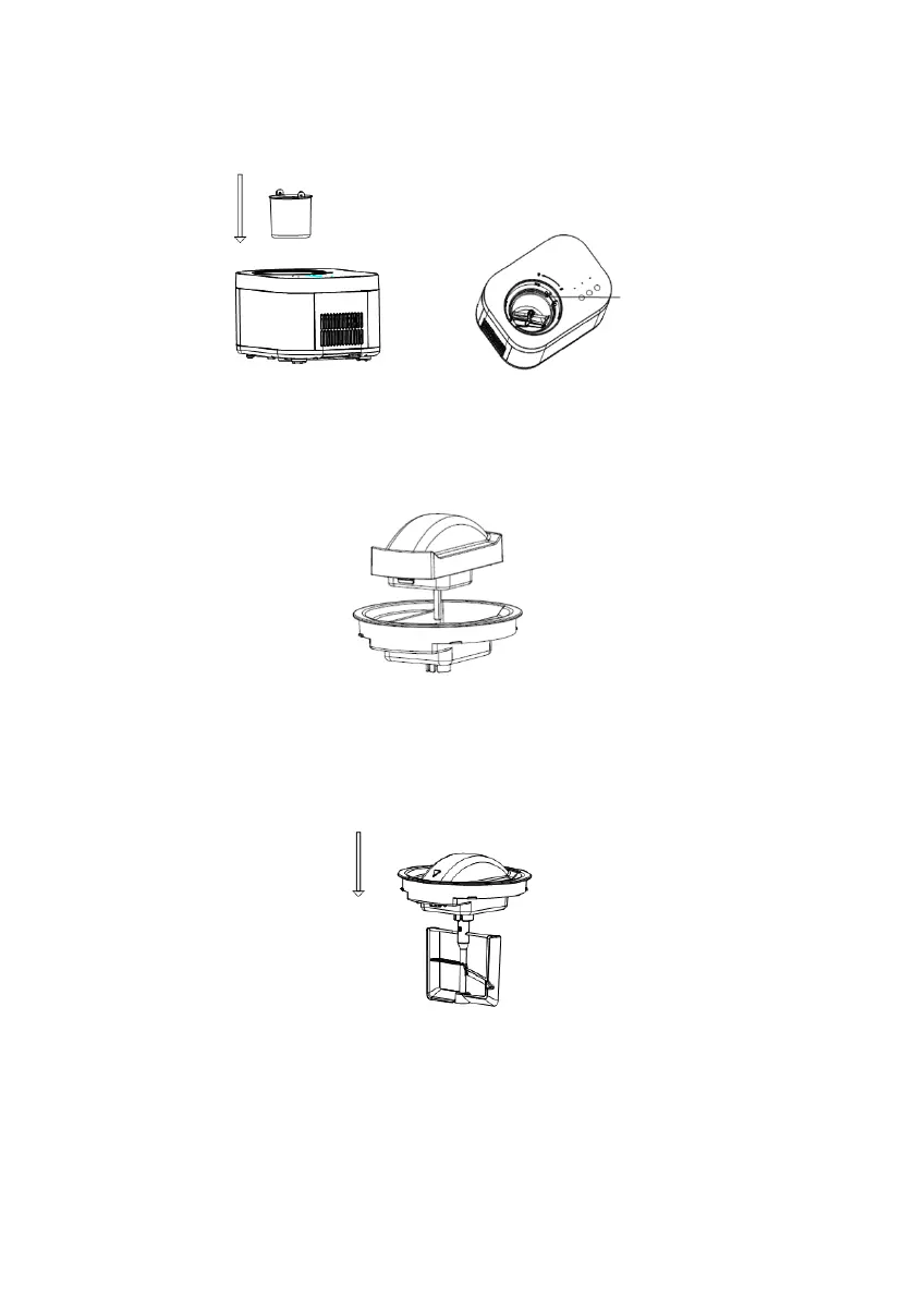 Namestite lopaticu za mešanje na providni poklopac i sklop (komponente) motora.