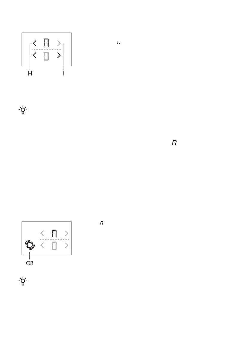 • To change the bridged zone's cooking power later on, use the (H) or (I) key for the lower cooking