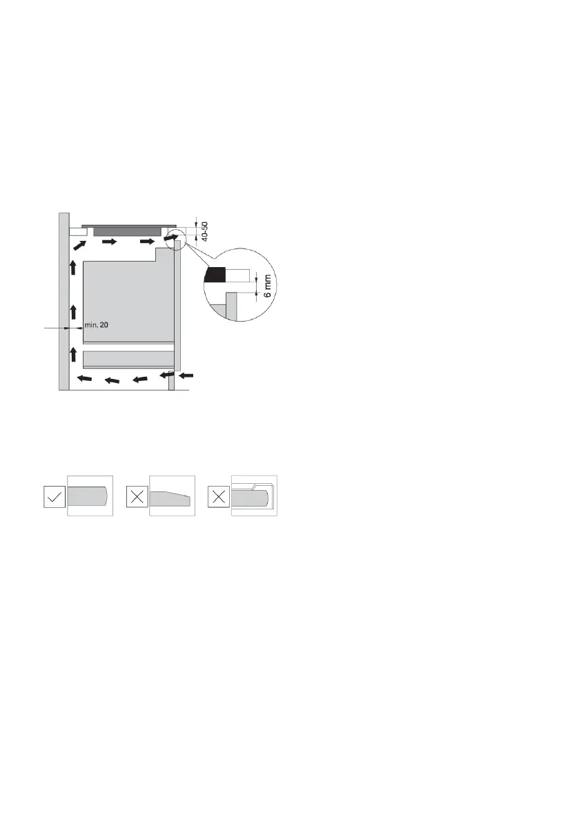 • The hob is fitted with a fan located in its lower part. If there is a drawer below the kitchen cabinet,