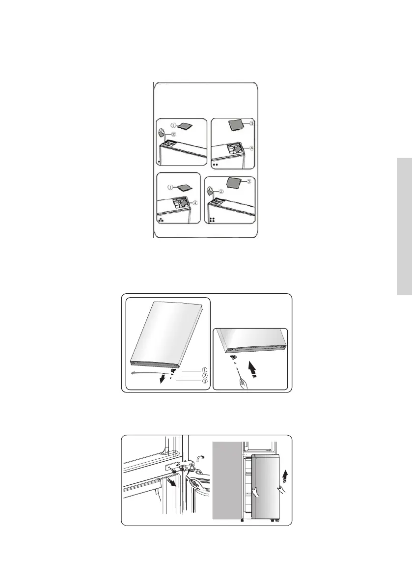 7. Loose screw 3 and take down part 2 and part 1, Install replacement door