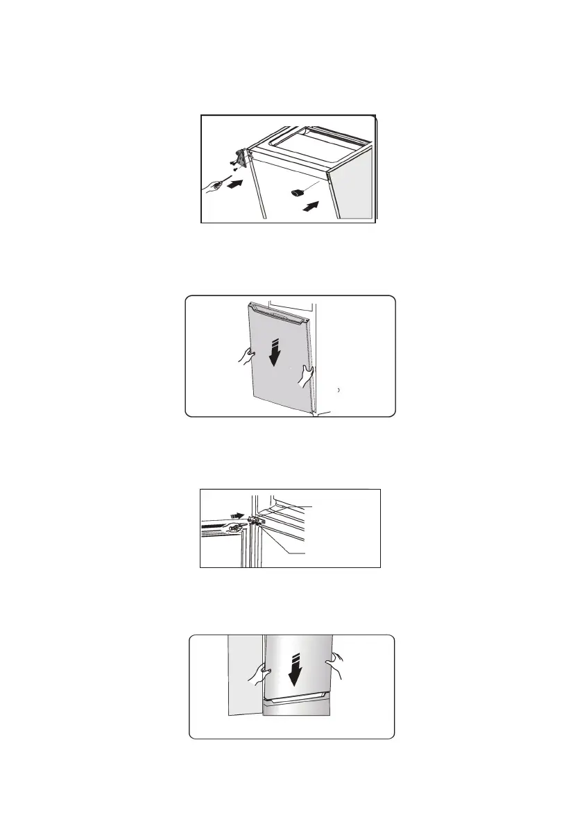 make the hinge axis into the lower hole of the lower door, then tight the bolts.