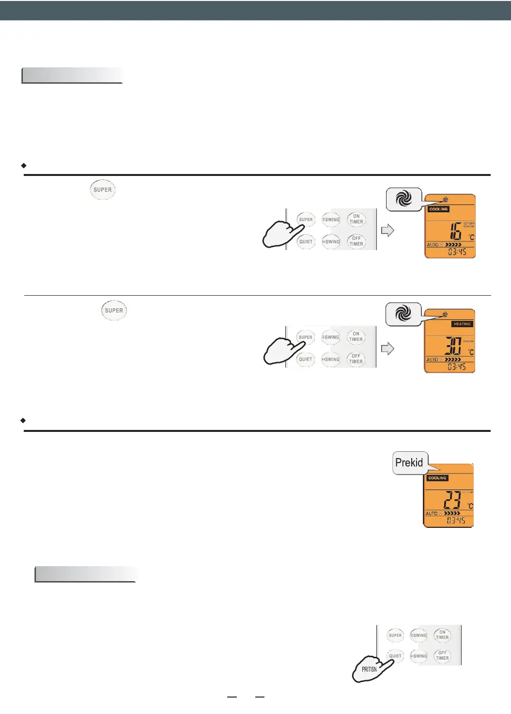 U režimu rada SUPER možete da podesite temperaturu, smer protoka vazduha ili tajmer.