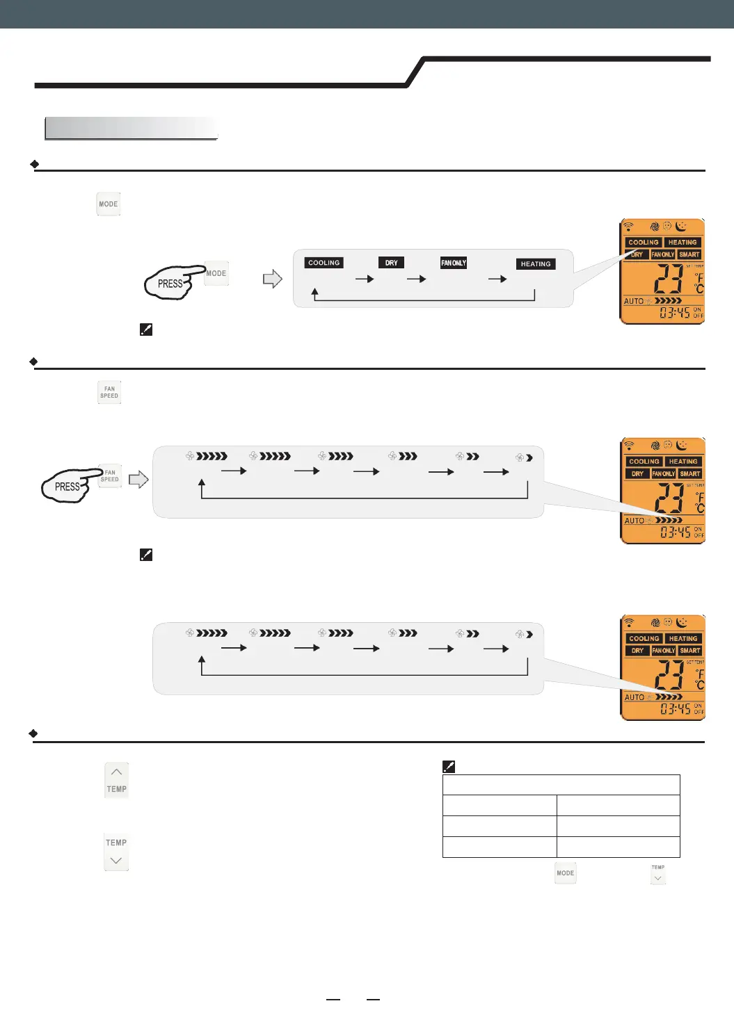 At "DRY" mode, Fan speed is set at "AUTO” automatically, "FAN SPEED" button