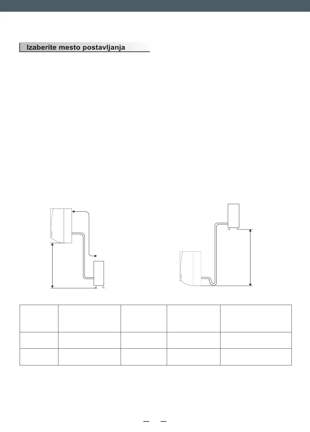 • Cev između unutrašnje i spoljašnje jedinice ne sme da bude duža od 5 m u fabrički