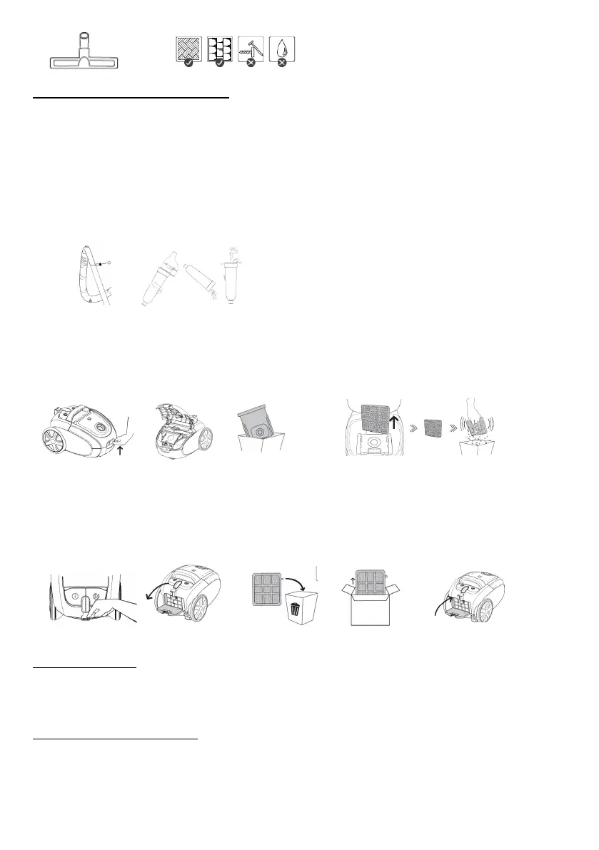 Worki na kurz należy wymieniać po ich zapełnieniu. // Otwórz pokrywę (naciskając przycisk). // Wyjmij