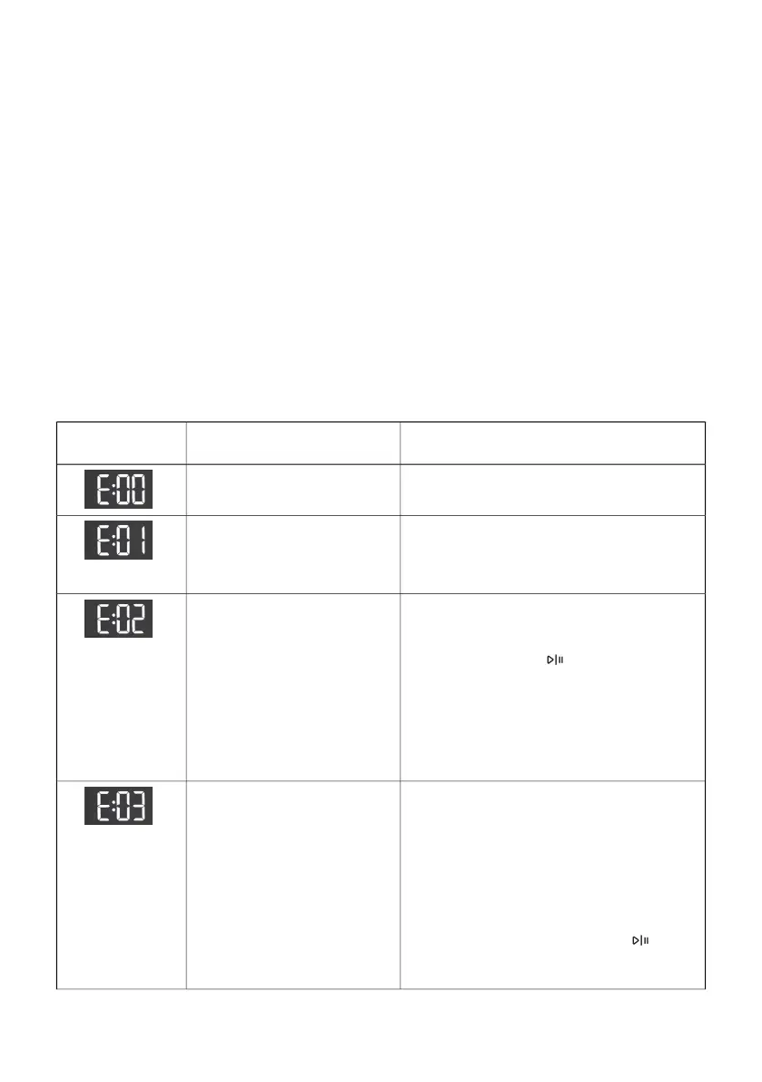 • Most errors during operation can be resolved by the user (see TROUBLESHOOTING TABLE).