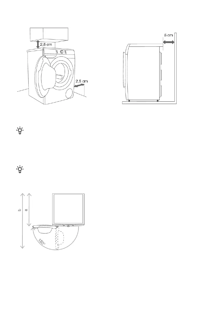 washing machine operation, we recommend observing the clearances from the walls as indicated