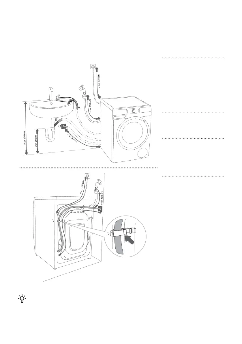 hose may be no more than 100 cm and no less than 60 cm. It can be attached in three ways (A, B,