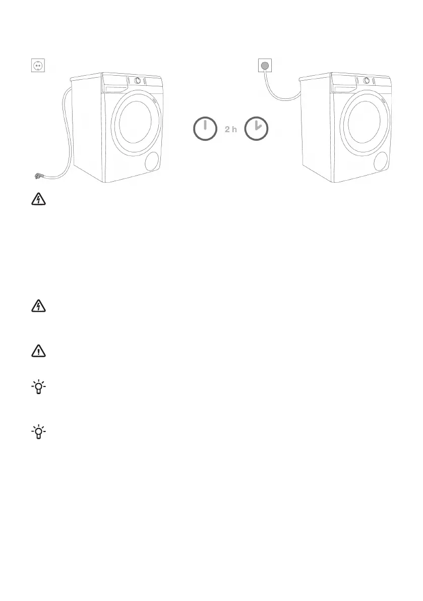 Before connecting the washing machine to the power mains, wait for at least 2 hours until