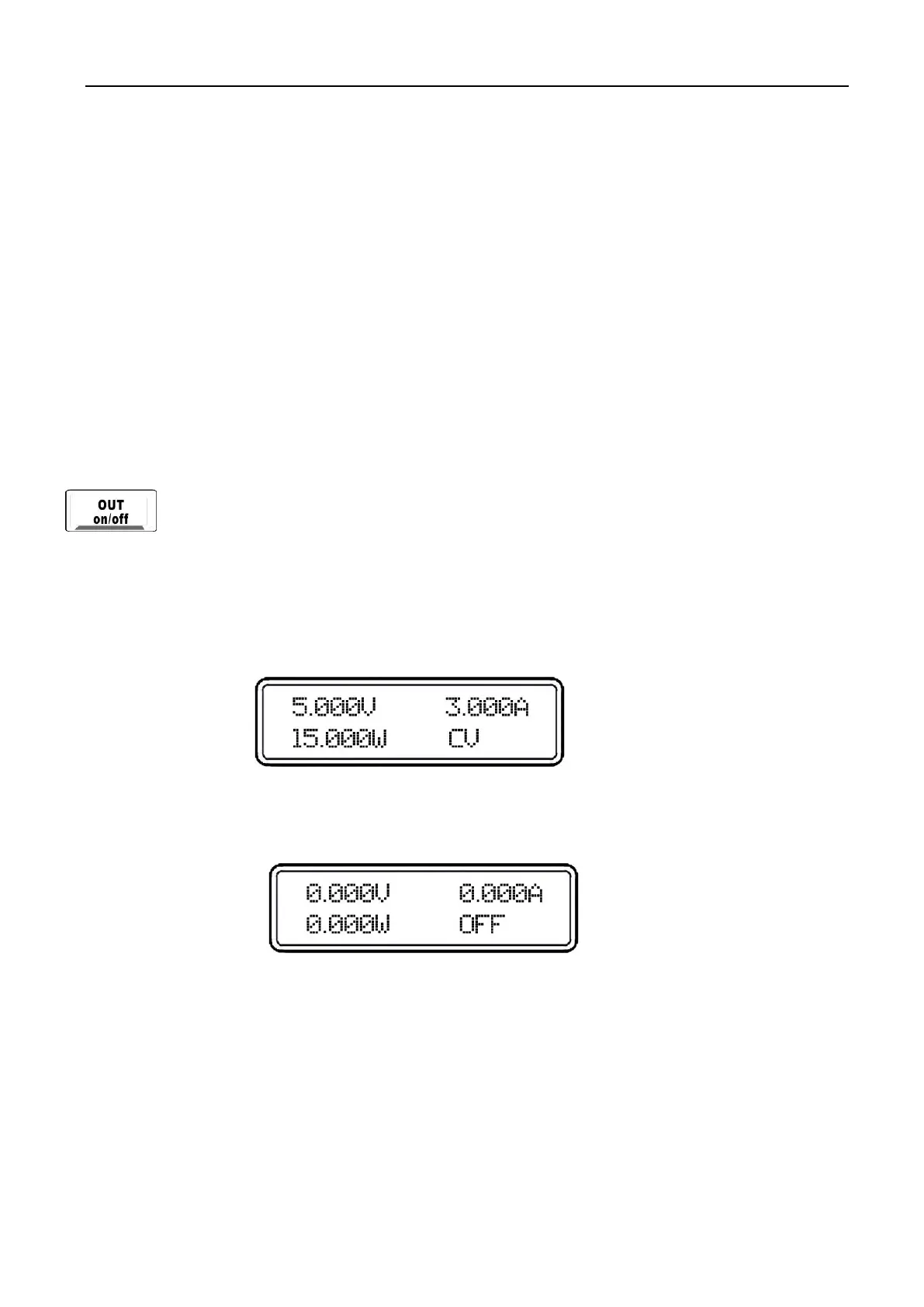 When the output of the power supply is disabled, you can enable it by pressing “Out on/off” key, and it can