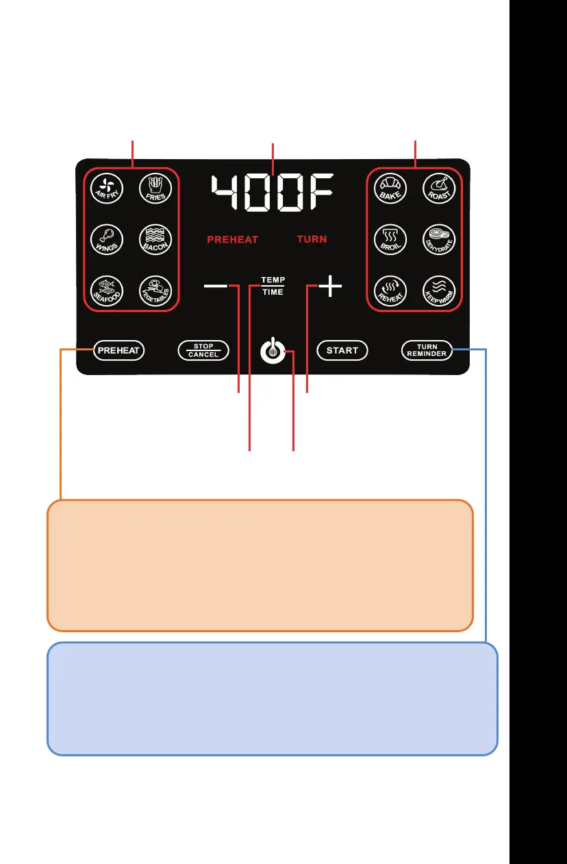 obtener alimentos uniformemente dorados y crujientes. Pulse TURN REMINDER