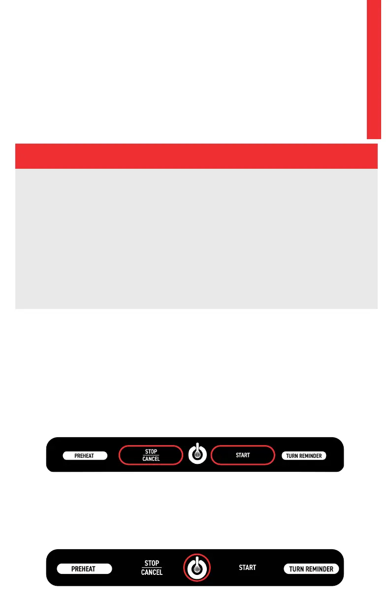 Tap STOP / CANCEL to stop cooking. Tap START to resume cooking.