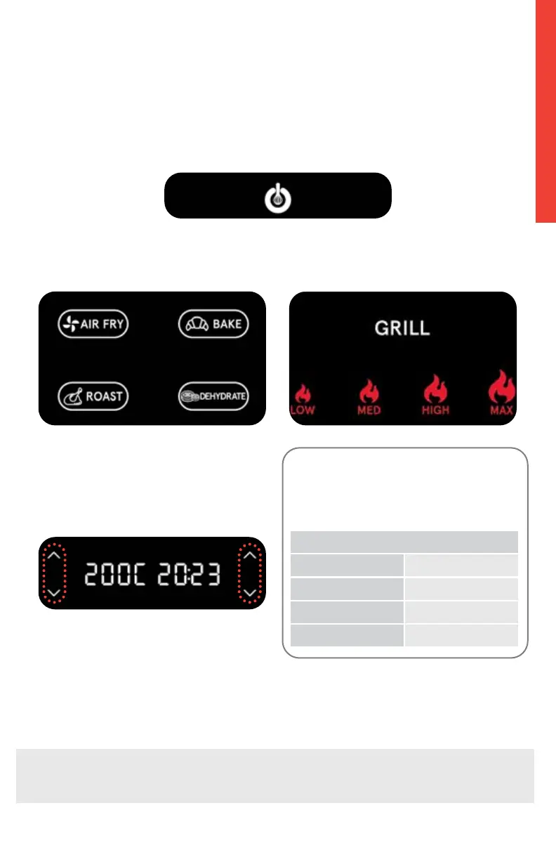 DEHYDRATE functions. For GRILL, the lid may be open or closed.