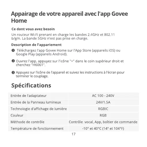 Bekijk gratis de handleiding van Govee B6061, stel vragen en lees de antwoorden op veelvoorkomende problemen, of gebruik onze assistent om sneller informatie in de handleiding te vinden of uitleg te krijgen over specifieke functies.