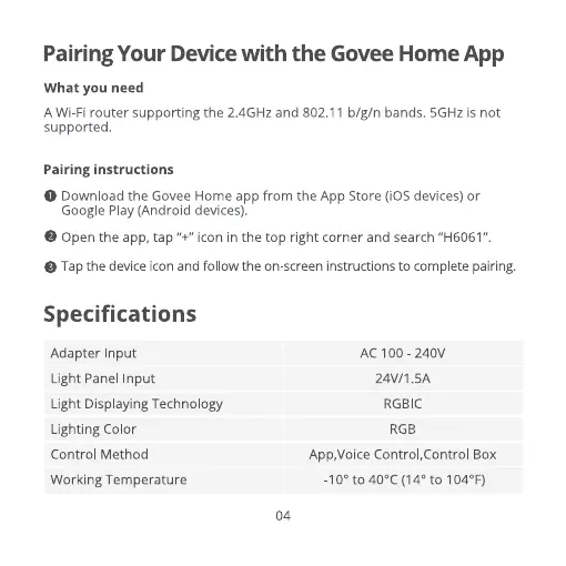 Bekijk gratis de handleiding van Govee B6061, stel vragen en lees de antwoorden op veelvoorkomende problemen, of gebruik onze assistent om sneller informatie in de handleiding te vinden of uitleg te krijgen over specifieke functies.