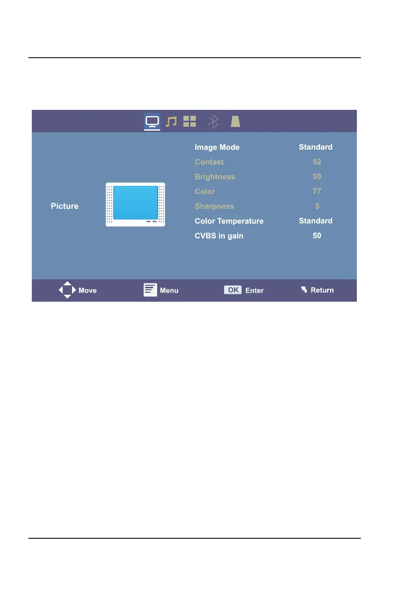 Set the CVBS gain level between 0 and 100 using the Arrow buttons on the remote.