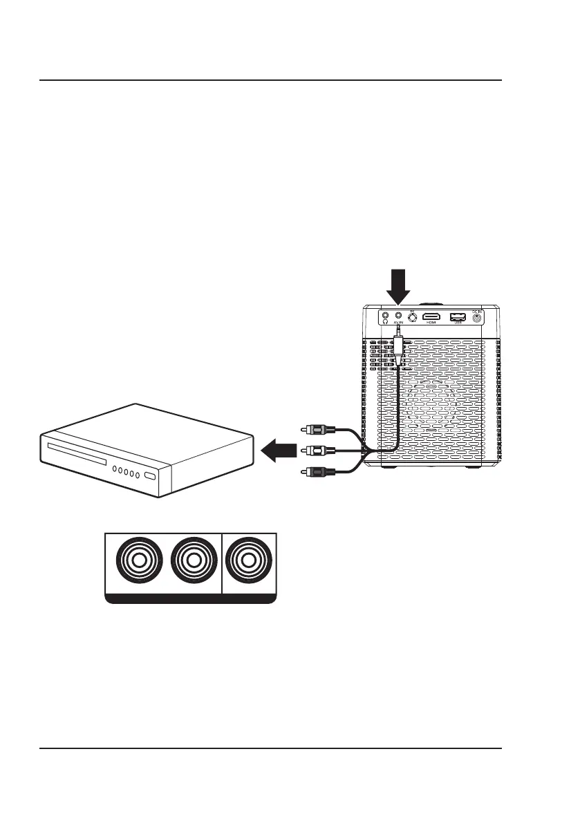 2. Connectez le câble audio/video de 3,5 mm vers RCA à l’entrée AV de l’appareil.