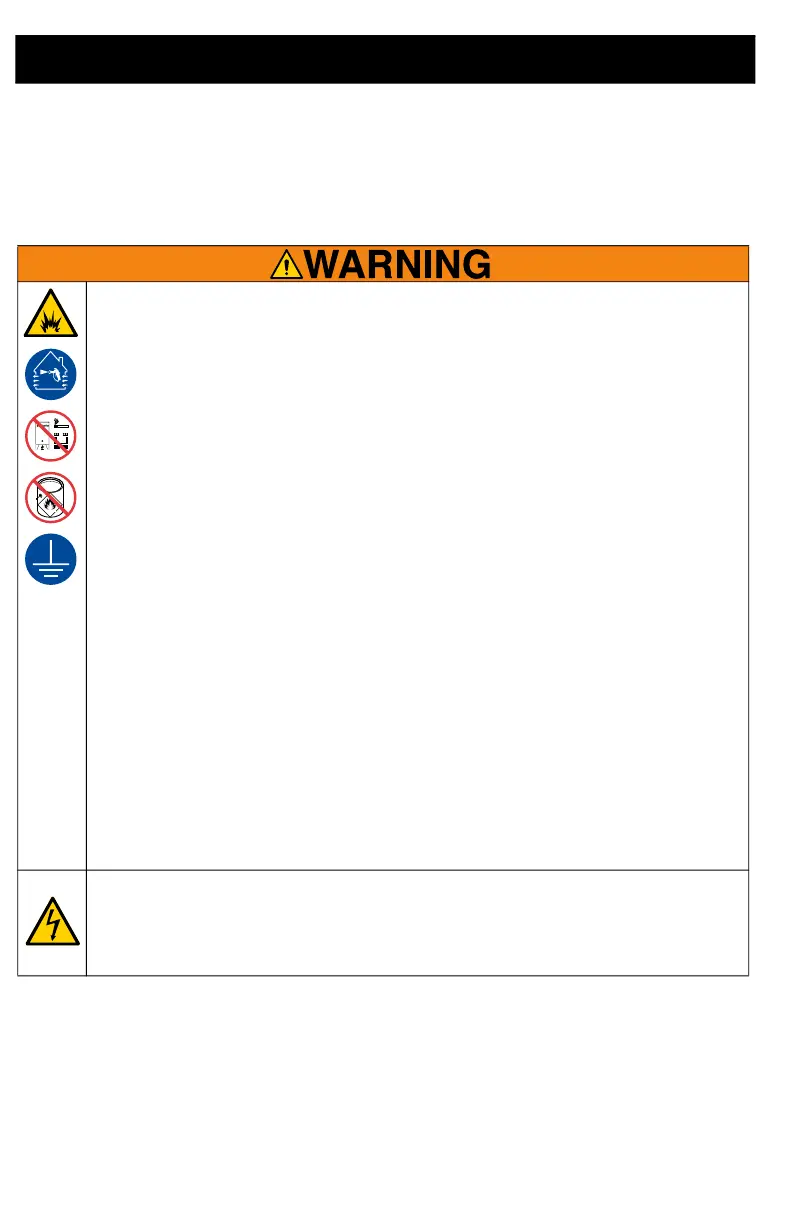 • Sprayer generates sparks. Keep pump assembly in a well-ventilated when