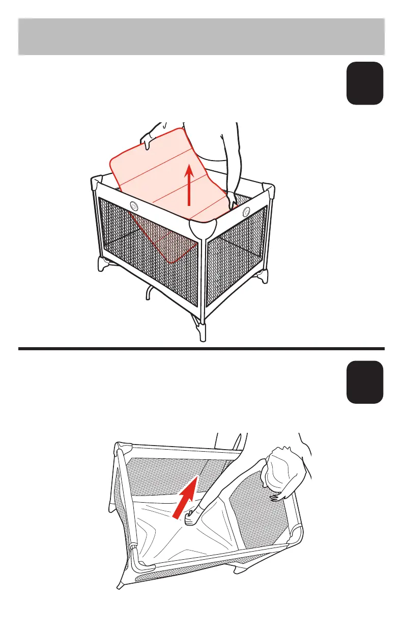 Release snap straps on bottom of playard. Pull mattress pad fully