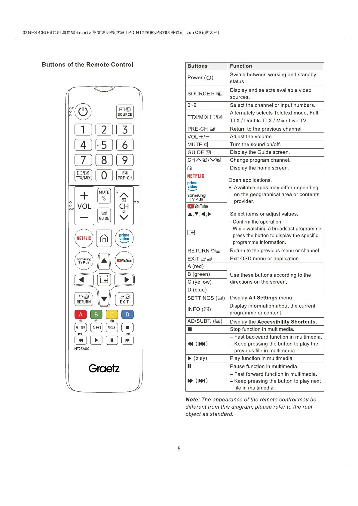 Bekijk gratis de handleiding van Graetz GR40T2940, stel vragen en lees de antwoorden op veelvoorkomende problemen, of gebruik onze assistent om sneller informatie in de handleiding te vinden of uitleg te krijgen over specifieke functies.
