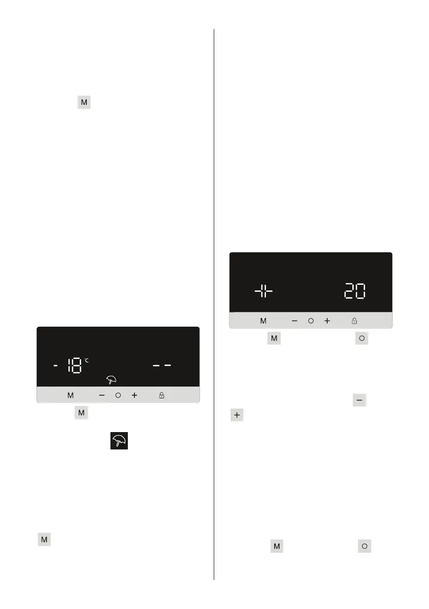 • Drikkekjølemodus kan avbrytes ved å
