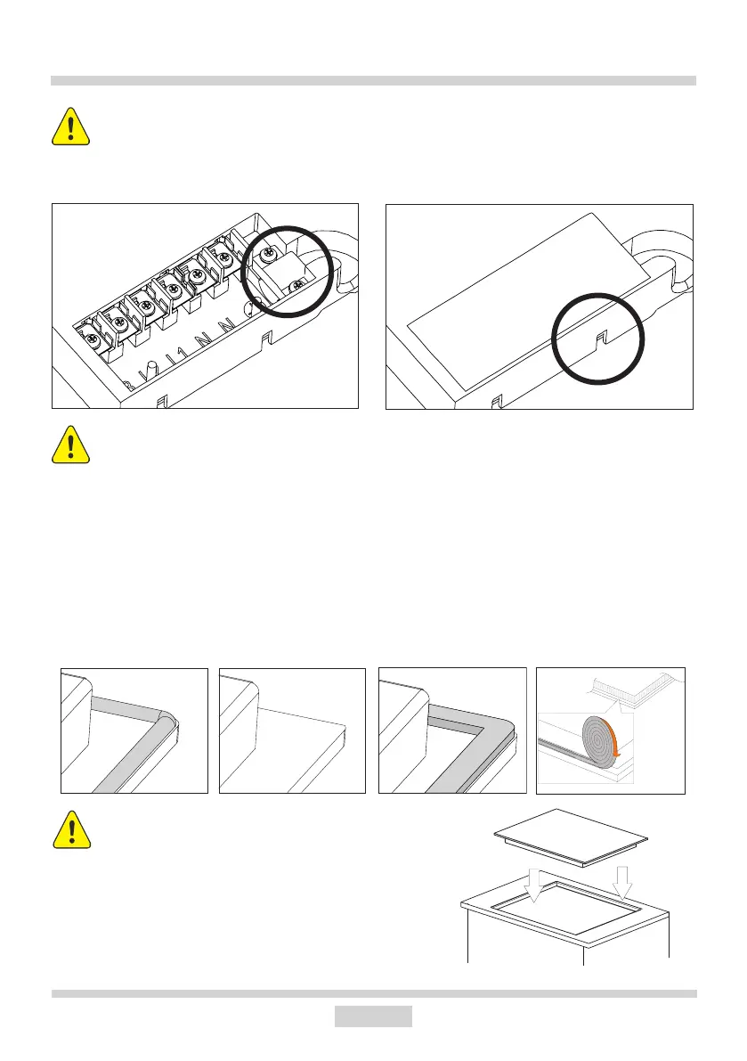Before installing the hob in the cut-out worktop, the gasket is to be attached to the back