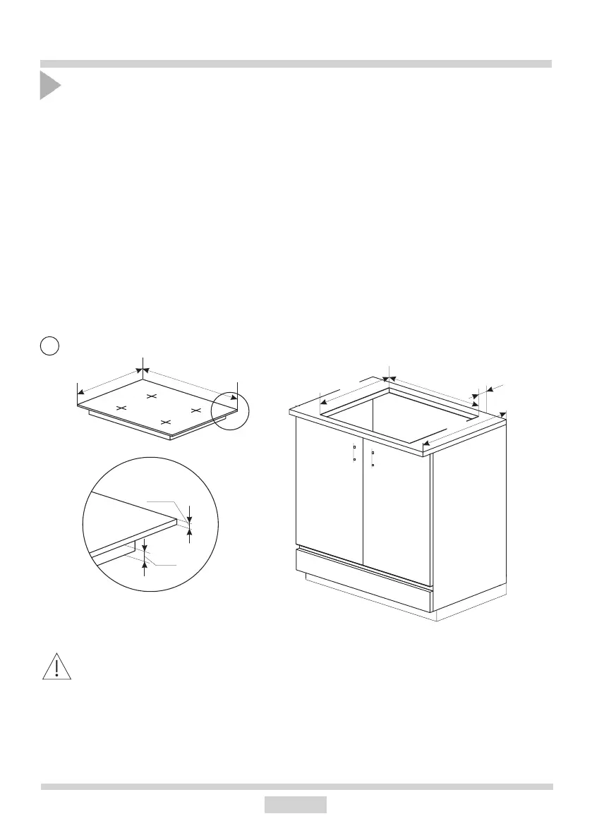 • Worktop must be made of materials, including veneer and adhesives, resistant to a tem-