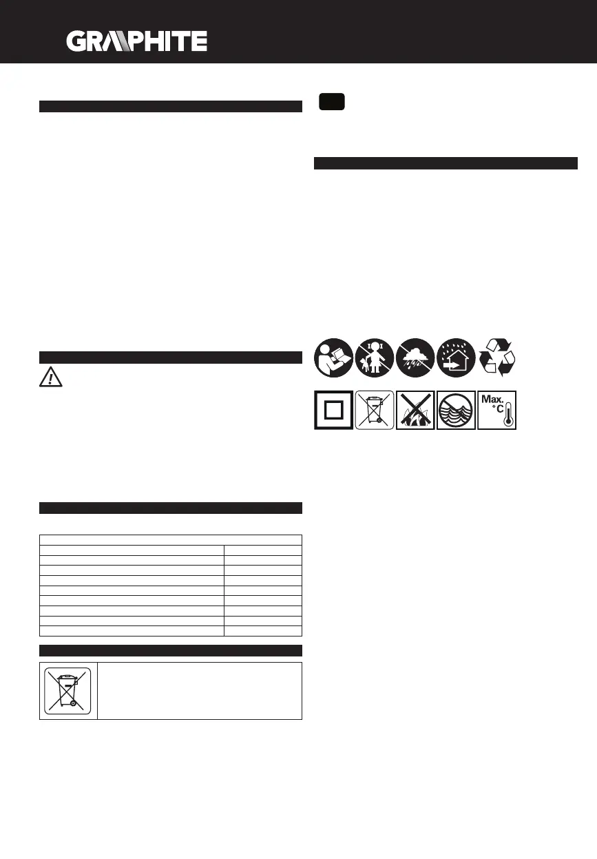 Bekijk gratis de handleiding van Graphite Energy+ 58G025, stel vragen en lees de antwoorden op veelvoorkomende problemen, of gebruik onze assistent om sneller informatie in de handleiding te vinden of uitleg te krijgen over specifieke functies.