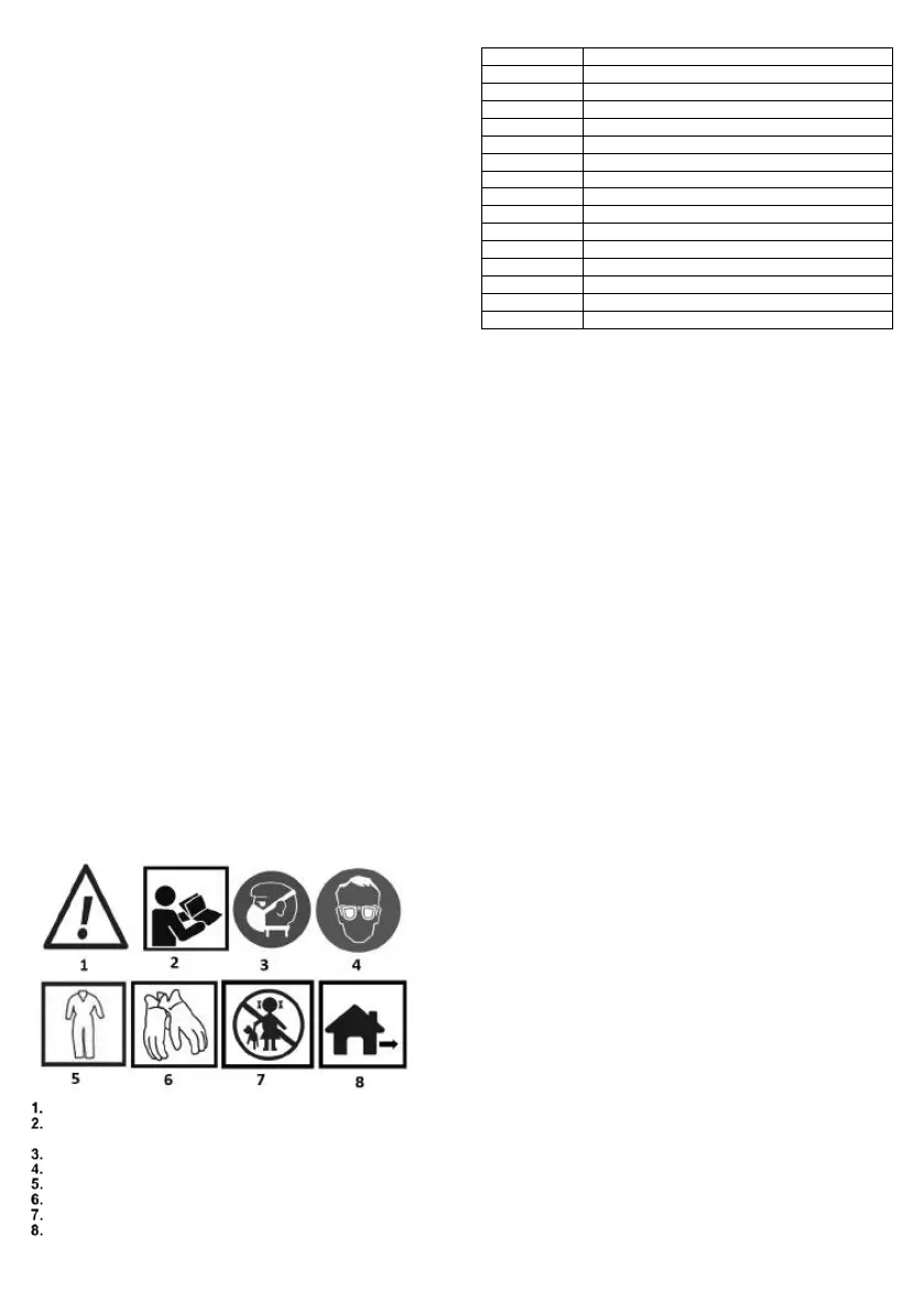 kelnes ir guminius batus), kad purškimo metu nepatektų ant odos.