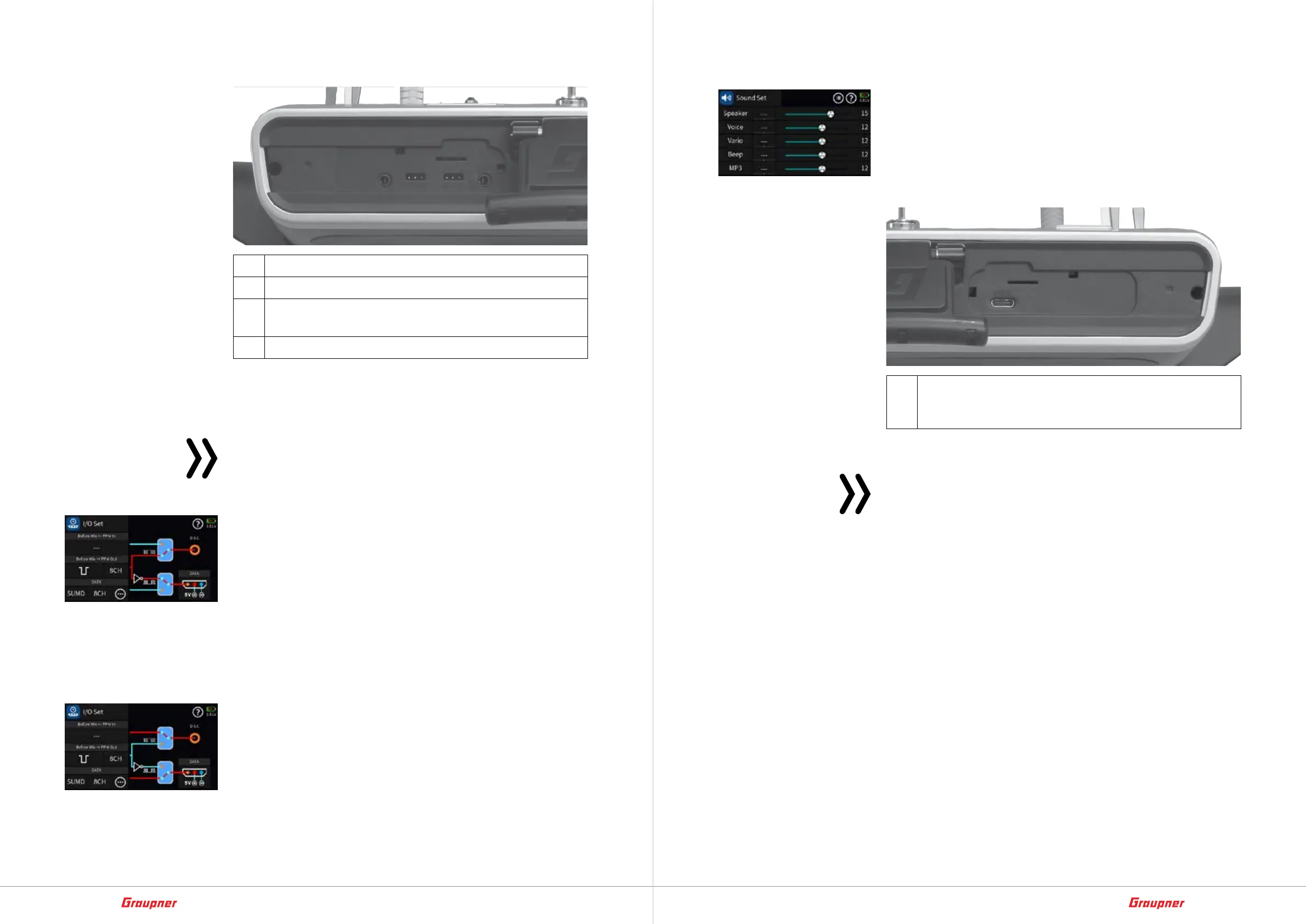 Connection panel under the left upper flap with Graupner-logo on front
