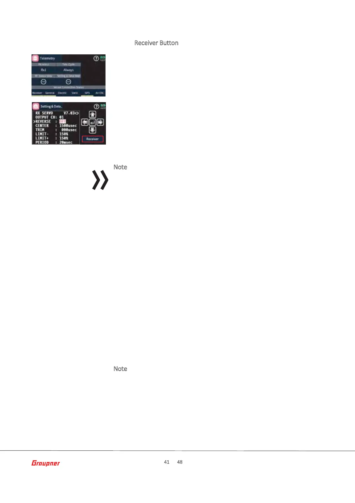 All seƫŶgs made via the “Telemetry” menu in the receiver, such as, fail-safe,