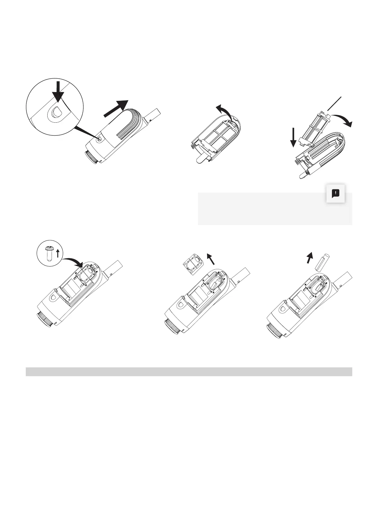 (1) Tryck och håll in knappen på bakfiltrets främre del för att ta bort hela filterskyddet från kroppen;