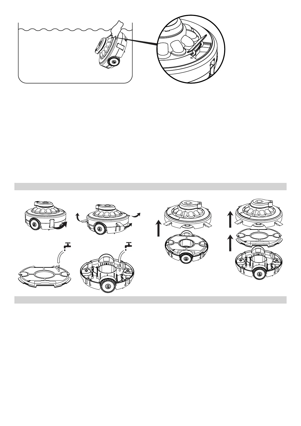 • Stellen Sie vor der Aufbewahrung sicher, dass sich kein Wasser mehr im Roboter befindet.