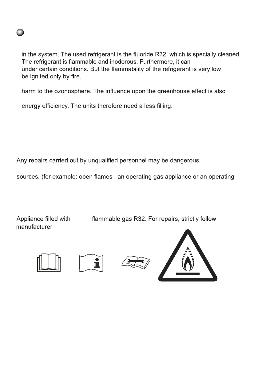 The appliance is using mildly flammable refrigerant R32 and tested to comply with