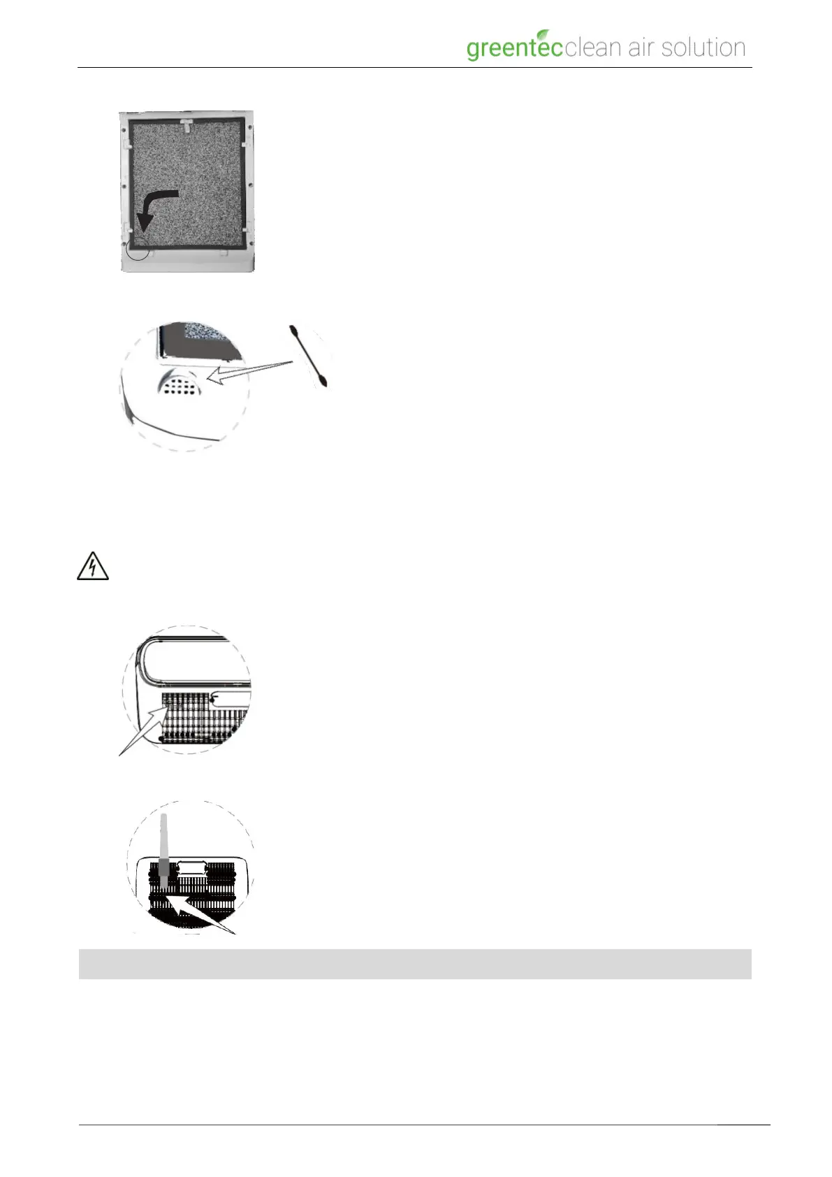 3. Clean the ionizer by carefully inserting a soft, clean brush pen into the holes of the grille. Do only exert low