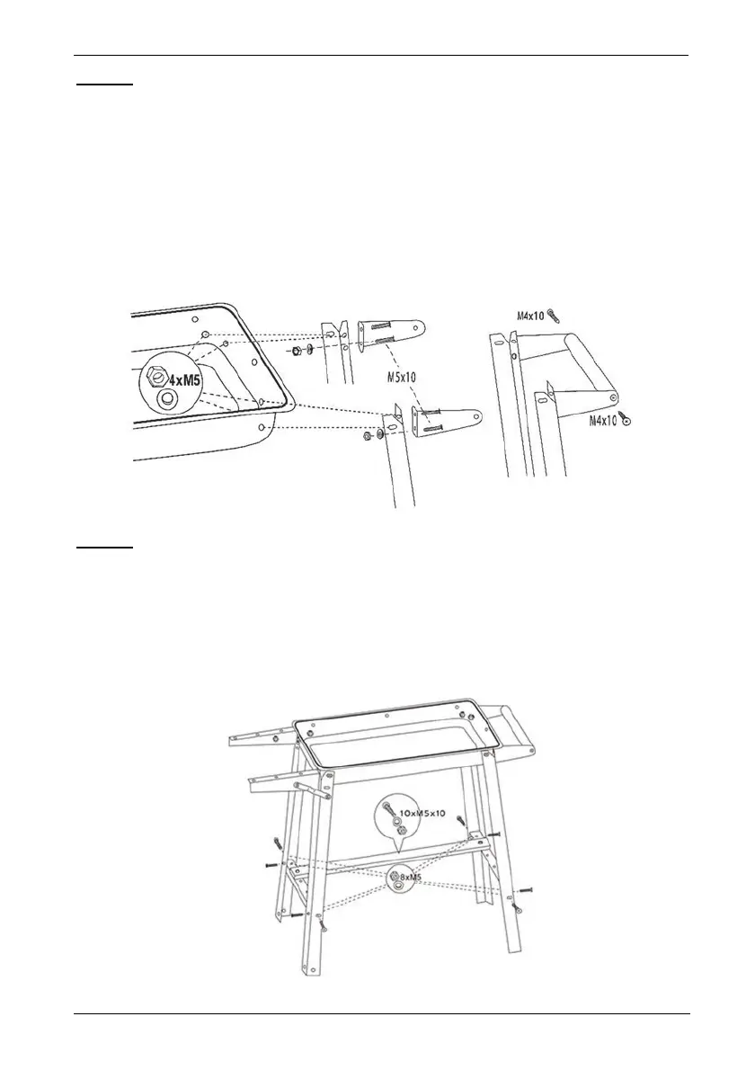 Vissez les deux traverses (9) entre les pieds (8) et les supports pour roue (13). Les cinq trous des