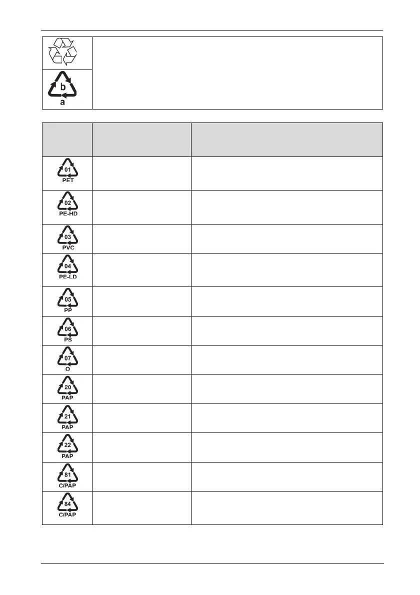 Veuillez prendre en compte l’identification des matériaux d’emballage lors du tri