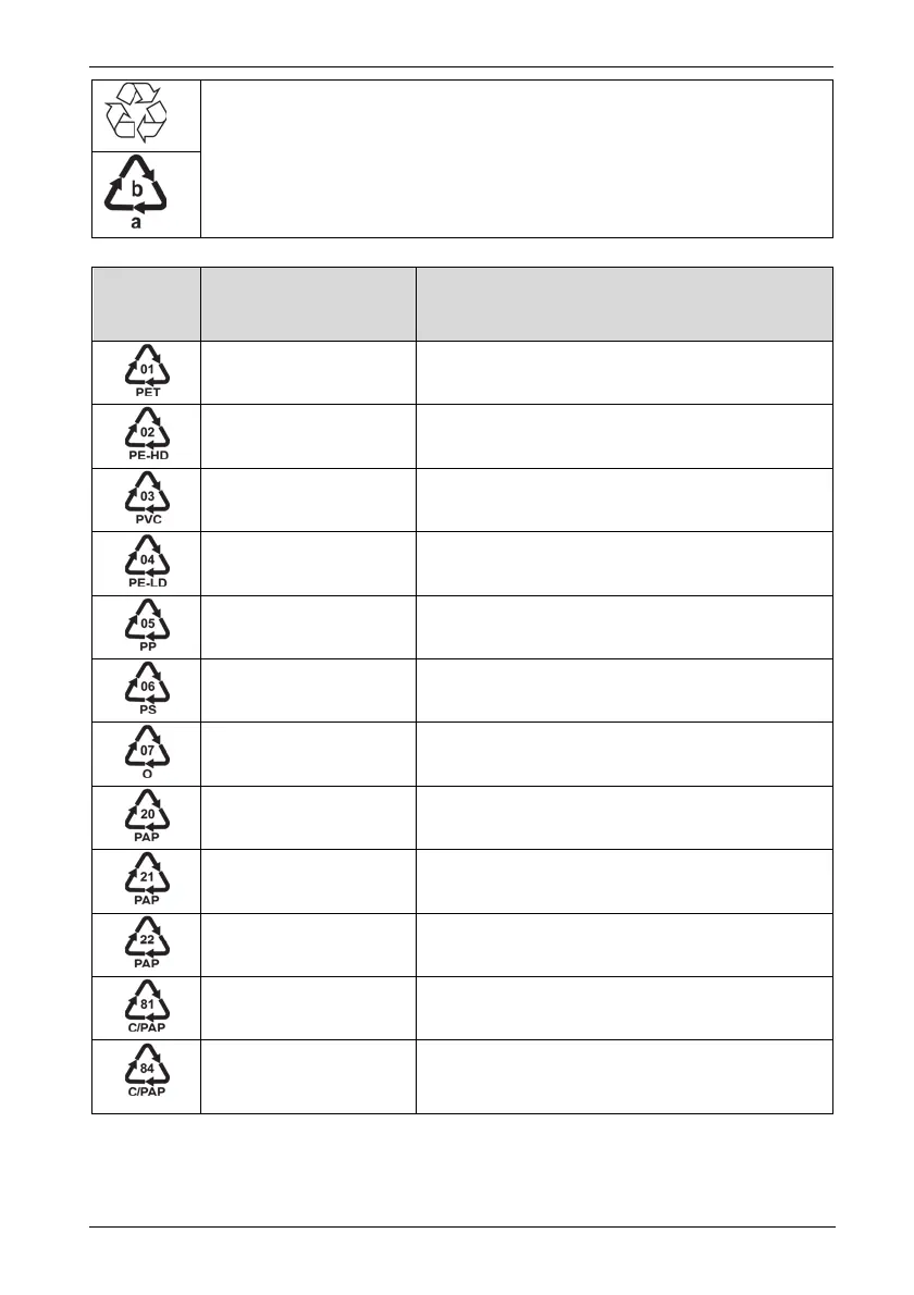 1 – 7: Kunststoffen / 20 – 22: Papier en karton / 80 – 98: Composietmaterialen.